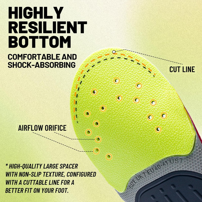 - Tips: Before you buy the product, please check the size of the insoles carefully and choose the right size to improve your foot health. Our products are suitable for most shoes, and the insoles function as foot protection in different types of shoes. In addition, we have equipped the insoles with a cuttable line so that the insoles fit perfectly to your feet for the best results.