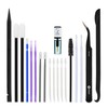 - Kit contents: Spudger, Halberd Spudger, Angled Tweezers, DeoxIT D100L, Cylindrical Brush, Medium Foam Tipped Swab, Precision Foam Tipped Swab, Precision Tipped Micro Brushes, Small Detailing Brush, Plastic Pick and Brush Combo, Lint-Free Cleanroom Wipes.