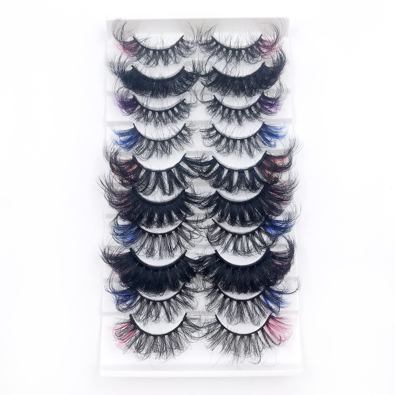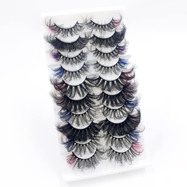 IFLOVEDEKD 10 Pairs Russian Strip Lashes With 5 Colors 25mm Mix Wispy Faux Mink Eyelashes Fluffy Long False Reusable D Curl Lash Strips