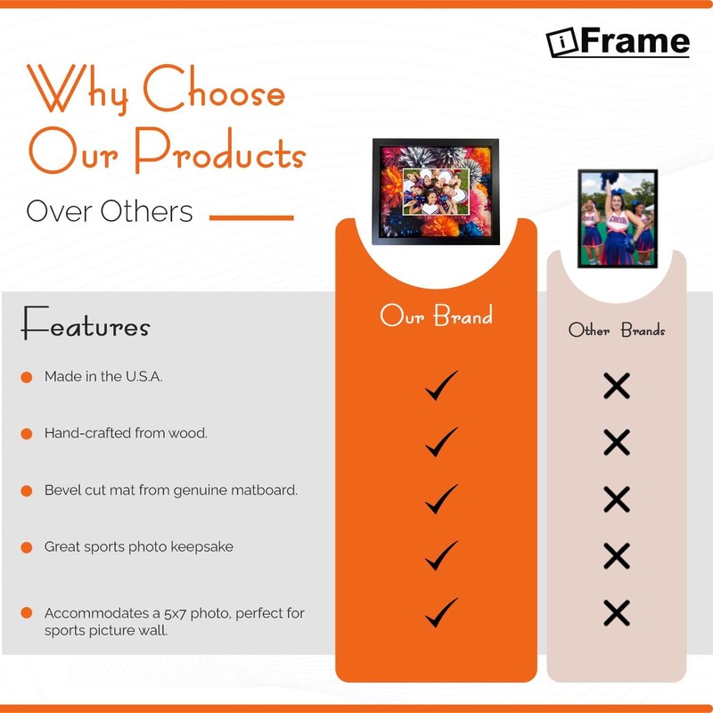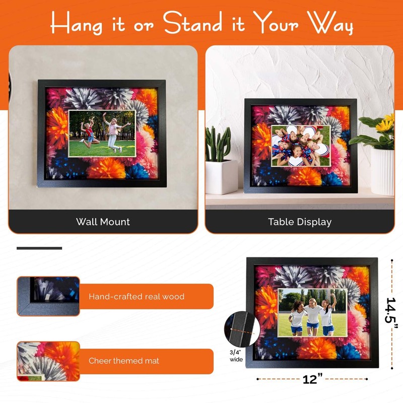 iFrame Commemorative Sports Athletics Picture Frames I Fits 5x7 Photograph I Real Wood Black Finish I Desktop, Table Or Wall Mount I Shatterproof Plexiglass I Made In USA I Cheer
