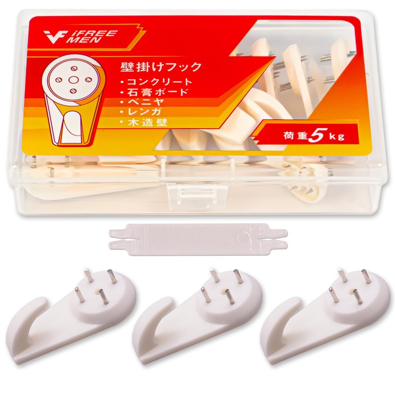 iFREEMEN Wall Hanging Hook, Concrete Hook, Plasterboard Hook, Wood Hook, High Load Capacity 11.2 lbs (5 kg) (Large x 12)