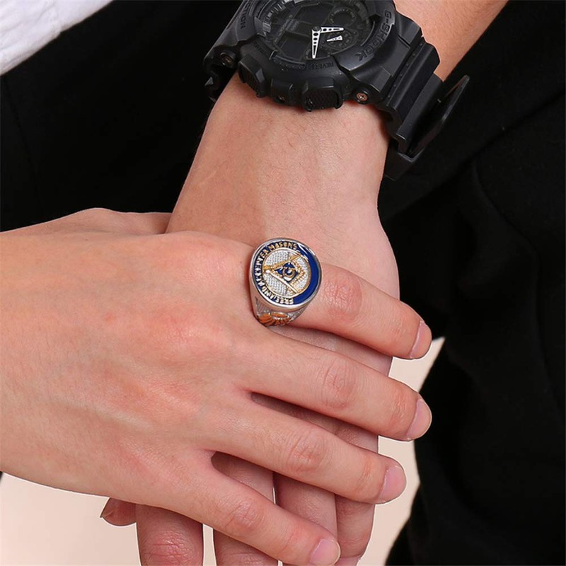 - Vintage silver gold masonic freemason rings for men, free and accepted masons engraved
