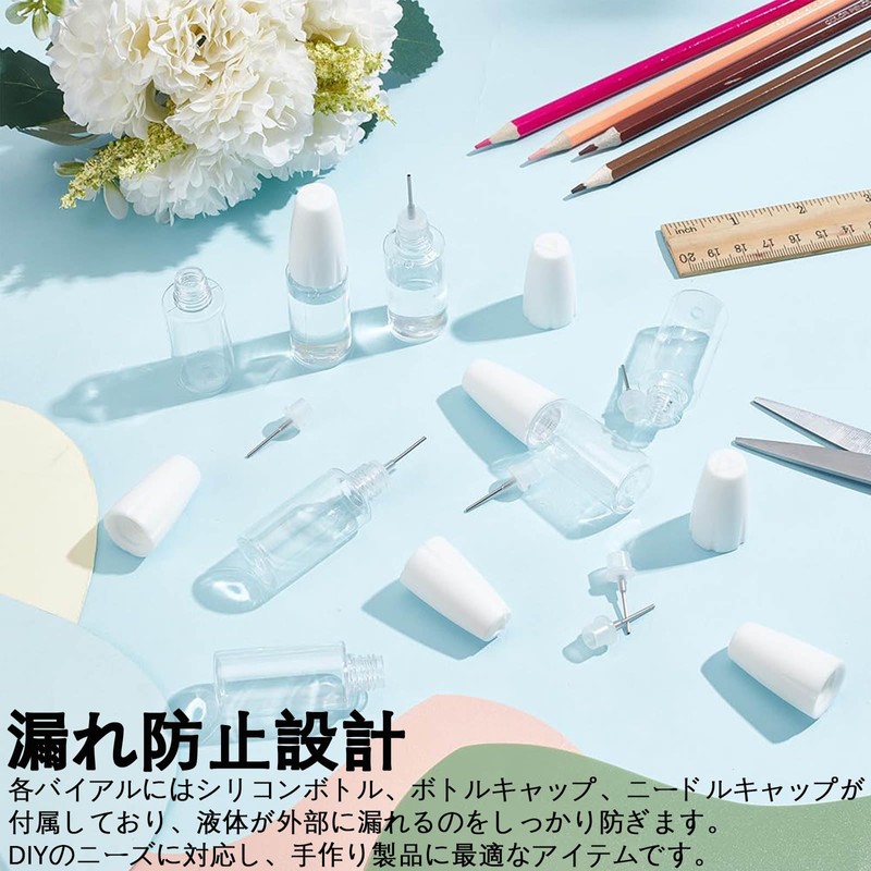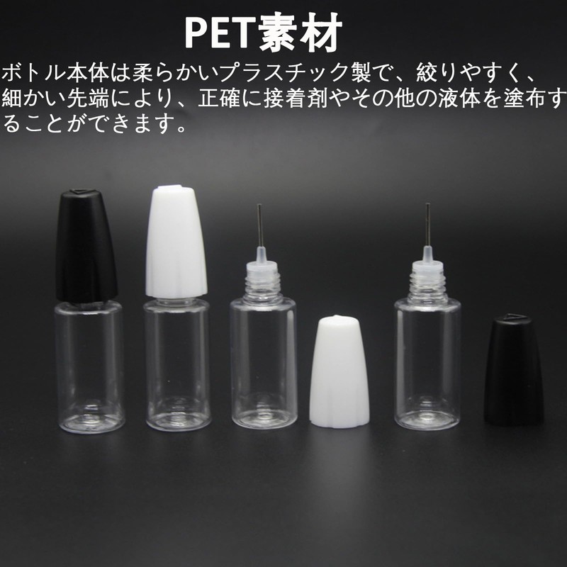 - [Leak-proof and convenient ultra-fine nozzle] Needle bottle with lid is convenient for detailed work. The inner cap with needle on the end ensures no leakage from the bottle. The spout is also a needle type so the tip will not fly while injecting the liquid easily. Even when carried in a bag, it will not leak, and the mouth is narrow so it won't leak. Thin nozzle makes it easy to adjust. The metal nozzle is durable and very good