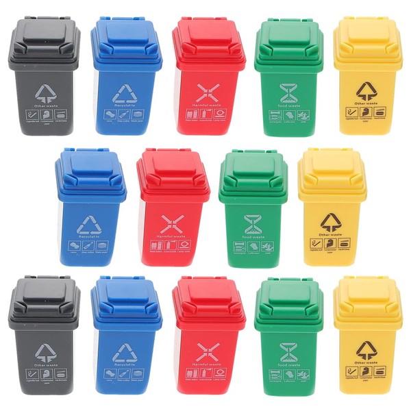 ifundom 15pcs Miniature Garbage Cans with Opened Lids Small Garbage Bin Model Mini Curbside Vehicle Garbage Bin Trashcan Mini Trash Can for Kids Toddlers