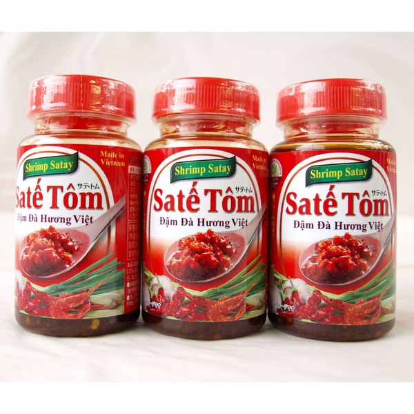 - 582704 Vietnamese Edible Oil Sate, Tom, 3.5 oz (100 g) x 3 pcs. Sate Tom Dam Da Huong Viet Made in Vietnam / Vietnamese eating rag oil with a refreshing scent of lemon-gres and rich flavor of shrimp