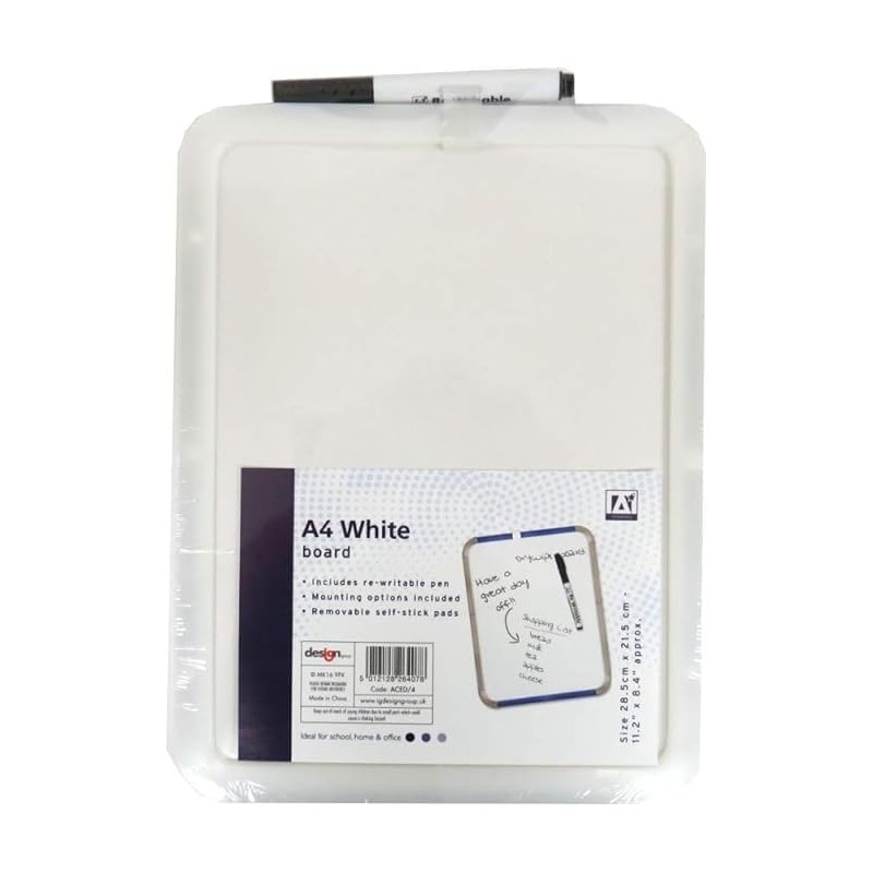 IG Stationery, A4 White Board: Crafted from high-quality materials, our A4 White Board provides smooth and durable writing surface. Whether you are jotting down important notes brain storming ideas, and working through problems, this white board is your blank canvas for creativity and organization. The compact A4 is ideal for desktop use, fitting seamlessly into any workspace. Its lightweight design allows for easy portability, ensuring you can take your idea whenever you go. Perfect for meetings, schools, and personal use, this white board is a practical tool for on-the-go thinker. Use the A4 White Board with dry erase markers for a clean and erasable writing experience. Keeps your thoughts organized, makes to-do-list, or sketch out diagram effortlessly.