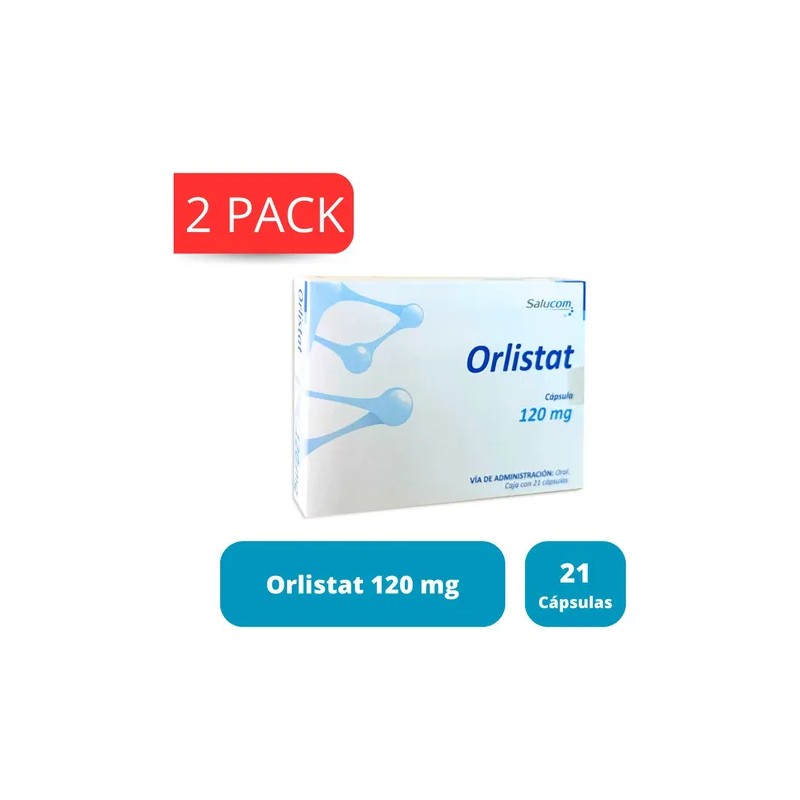 El orlistat es un fármaco para tratar la obesidad mediante reduciendo la absorción de la grasa contenida en los alimentos al inhibir la hidrólisis de los triglicéridos, aumentando su eliminación por las heces en un 30%. Este medicamento debe de ser prescrito por un médico. Orlistat de 120 mg cada caja contiene 21 tabletas, en total recibirá dos cajas. Ortlistat, debe ser prescrito y supervisado por un profesional de la salud para asegurar un uso seguro y efectivo.