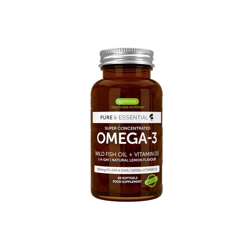 Igennus Healthcare Nutrition Igennus Advanced Omega-3 Wild Fish Oil & Vitamin D3, 1-a-Day 60 Servings, EPA DHA Fatty Acids, Triglyceride Form, Fast-Acting rTG, IFOS Certified, Ultra Pure, Natural Lemon Flavour