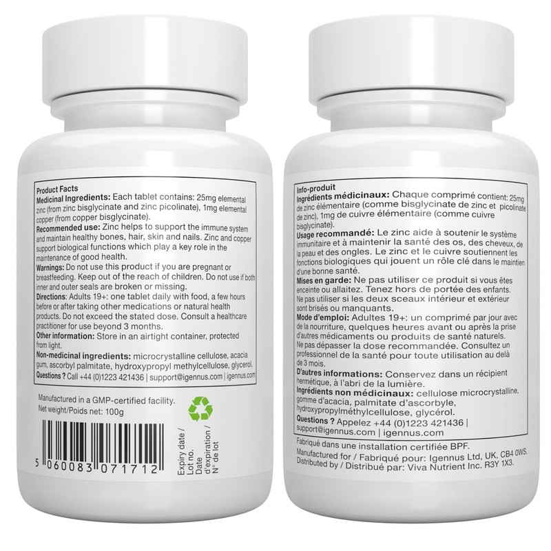Igennus Healthcare Nutrition Igennus Chelated Zinc Picolinate & Bisglycinate Complex 25mg with Copper, Clean Label & High Absorption, 180 Tablets, Supplement for Immune, Skin and Cellular Health, Non-GMO, Vegan