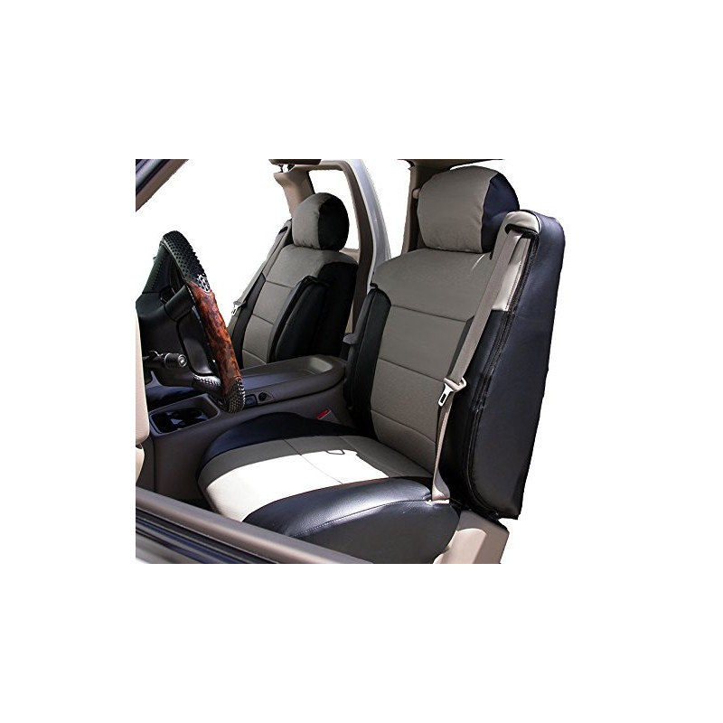 Iggee 2003-2006 Chevy Silverado Black/Grey Artificial Leather Custom Made Original fit Front Seat Covers & 2 Armrest Covers