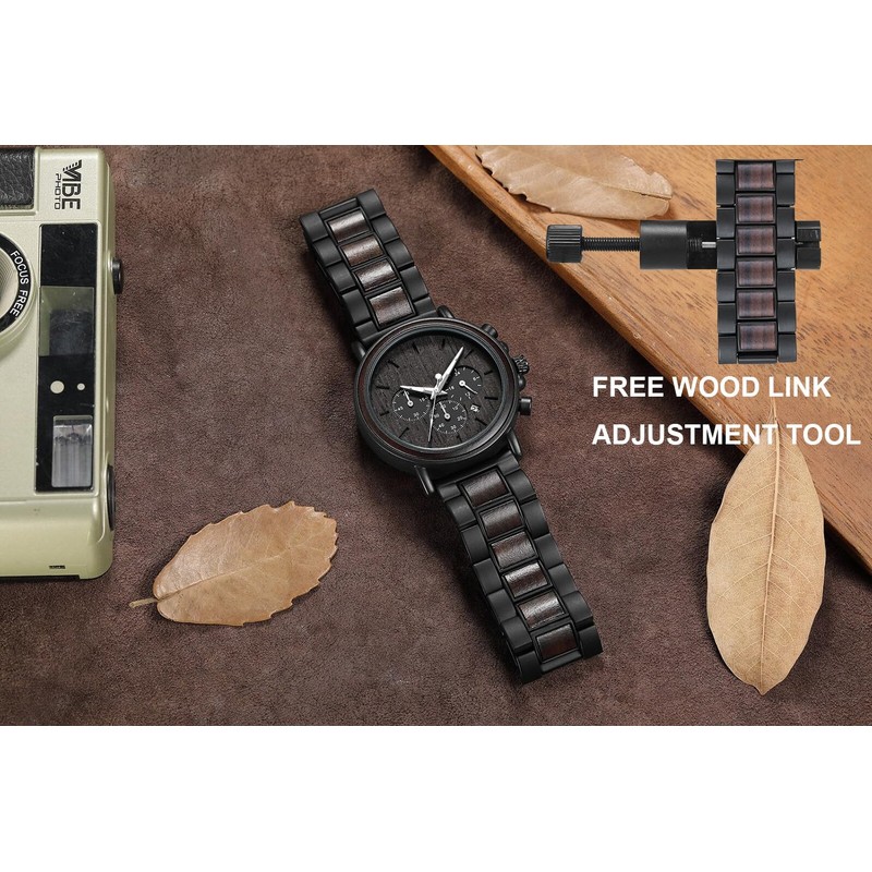- Handmade Wooden Watch, Engineered from black stainless steel and detailed with ebony inlay