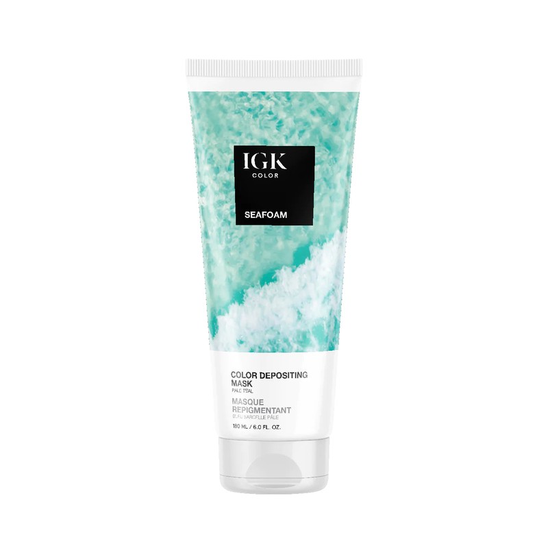 IGK Color Depositing Mask Seafoam - Pale Teal 180ml is a color depositing mask that helps to maintain and enhance hair color.