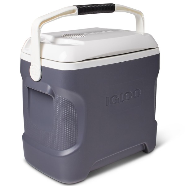 Product Description Igloo's 28QT Iceless cooler is the perfect addition to any camping trip or road trip when you don't want to deal with ice. Simply plug in the 12V DC receptacle, perfect to plug into your car for portable use. Igloo's Iceless cooler features a quiet brush less motor and convection cooling. Without the ice you are able to maximize the space and fill it to the brim with all of your favorite snacks, sandwiches, drinks and treats. Simply pack, plug and go. From the Manufacturer Igloo