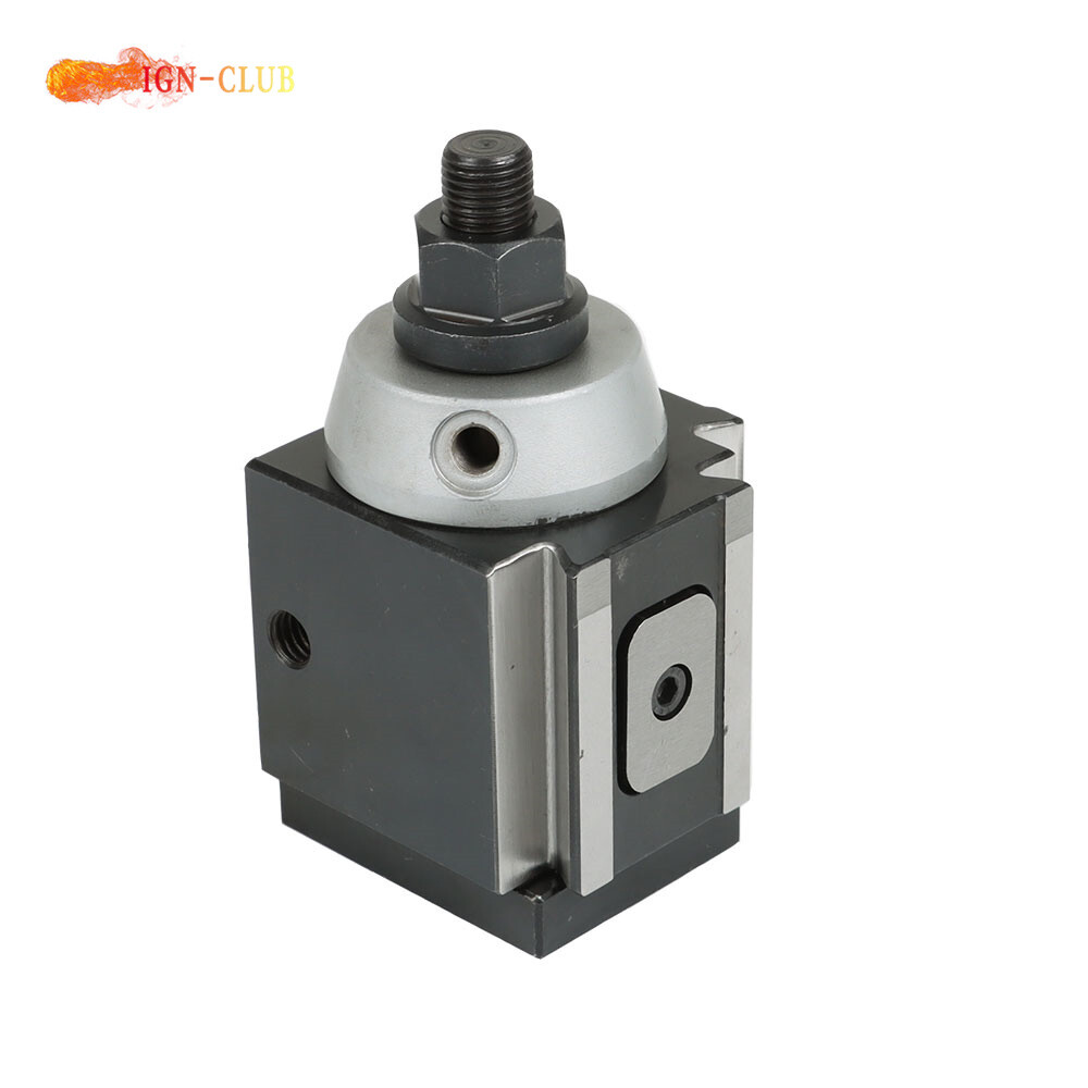 Description: You can machined it to fit your specs. Piston type tool posts are precision engineered to assure repetitive accuracy. Advanced design provides built in quick tool changing versatility with positive rigidity to meet the most exacting working tolerances. All working parts hardened and precision ground. Maximum rigidity for chatter free performance. No time wasted with shims. Speed lathe operations 90%. Completely sealed for maintenance free operations. Takes only a few seconds to change tools.