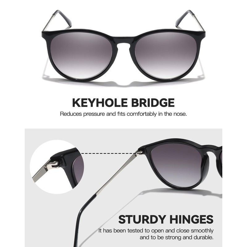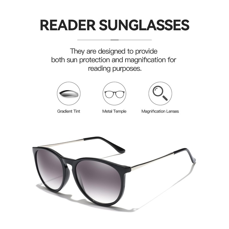 • Reading Sunglasses for Women: Now you can read your favorite book outside by the pool or on the beach without squinting. Sun readers DON'T have a bifocal line - the ENTIRE LENS IS MAGNIFIED. Perfect readers protect your eyes from the sun's rays when reading.