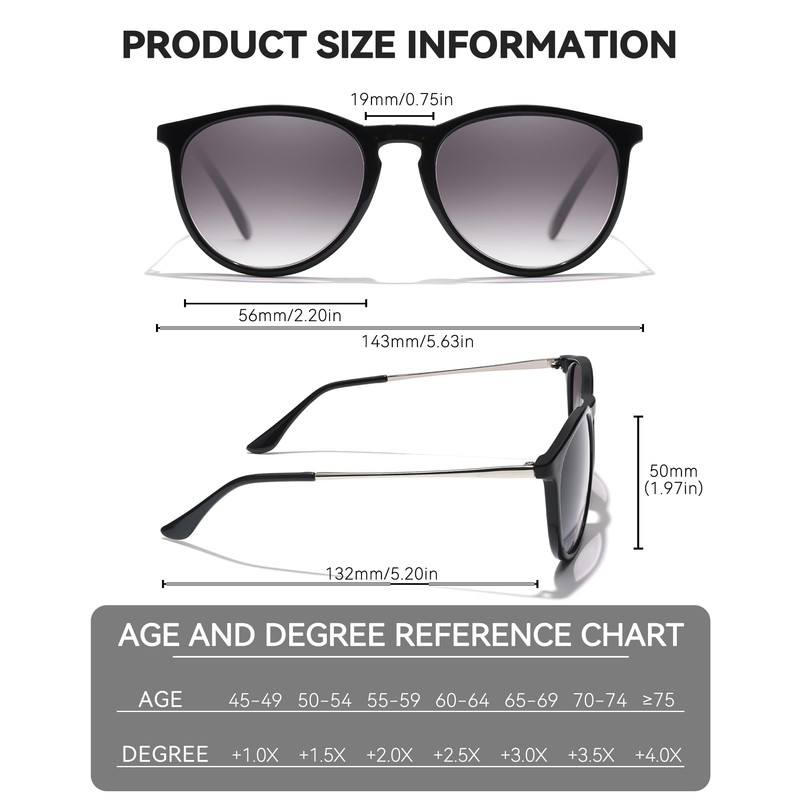 • Sleek, Lightweight Design: Designed to flatter every face shape, classic design frames make you more stylish. Constructed of sturdy metal and lightweight plastic, our sun readers are built to withstand normal wear and tear without compromising comfort.