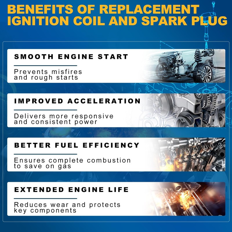 - 【Improved Fuel Efficiency & Power】 Faulty coils and plugs can waste fuel and lower performance. Replacing them helps optimize combustion, giving better throttle response, improved fuel economy, and a more enjoyable drive
