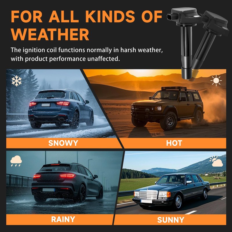 - [High-quality Materials]: Made of durable copper windings and a robust ceramic insulator, this ignition coil kit withstands high temperatures and harsh conditions. Steel core with high-grade dielectric insulation ensures consistent performance in all weather conditions. Exceeds OEM durability standards.