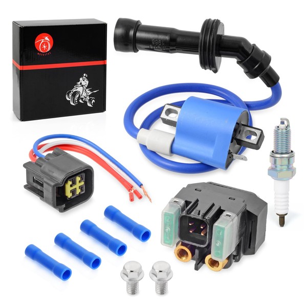 Ignition Coil Pack & Starter Relay Solenoid Spark Plugs Compatible with Yamaha YXR660F Rhino 660 2004-2007
