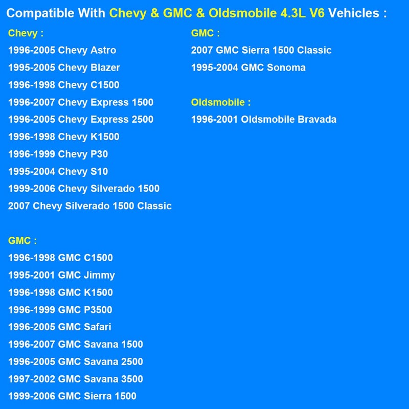 Compatible with Oldsmobile 4.3L V6 Vortec Engine Vehicles: