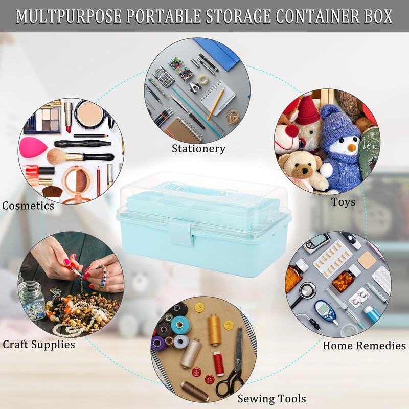 - The 3-tier plastic craft storage boxes with a transparent cover allow for quick and easy content identification purposes. Great for sewing item,teaching aid, pen, craft supplies and small toys, especially puzzles, fishing tackle, manicure supplies, cosmetics, candle, stationery, medicine etc