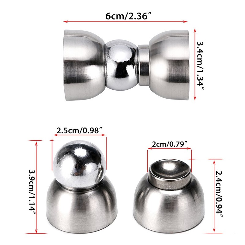 - Size : overall length: 6cm, diameter of base: 3.4cm, Please Noted that the round ball part and screws are Not Stainless Steel. They were shorter than a standard door stop, please kindly check the distant between the wall and door handle whether less than the overall length of the door stop before you purchase