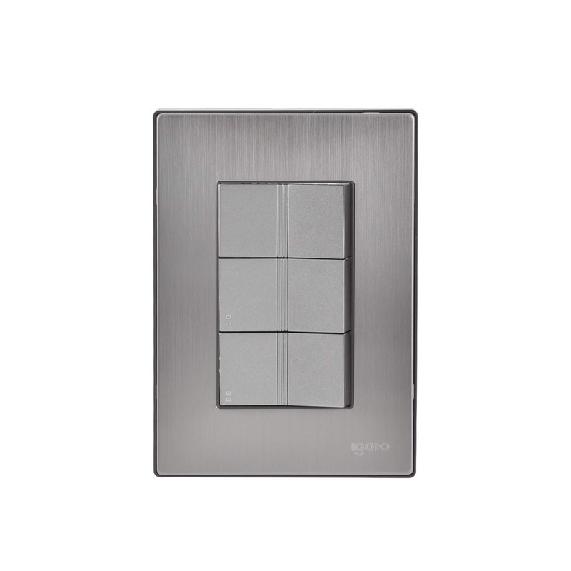 iGoto INOX1021 con 3 apagadores escalera de 1 módulo, Acero Inoxidable, Color Plata
