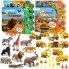 iGRATENS Construction Toys with Sound Books & Safari Animals Figures Toys with Sound Books, Board Book with 10 Buttons & 20 PCS Truck Toys & Animals for 3+ Year Old