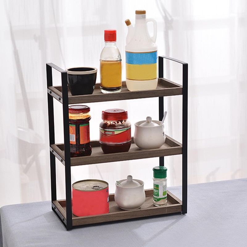IGTOPS Standing Shelf with 2 Shelves, Storage Shelf, Bathroom Organiser, Multifunctional Wooden Shelf Made of Wood and Metal, Storage Shelf No Drilling, Kitchen Shelf, Bathroom Shelf (Dunk-3Tier)