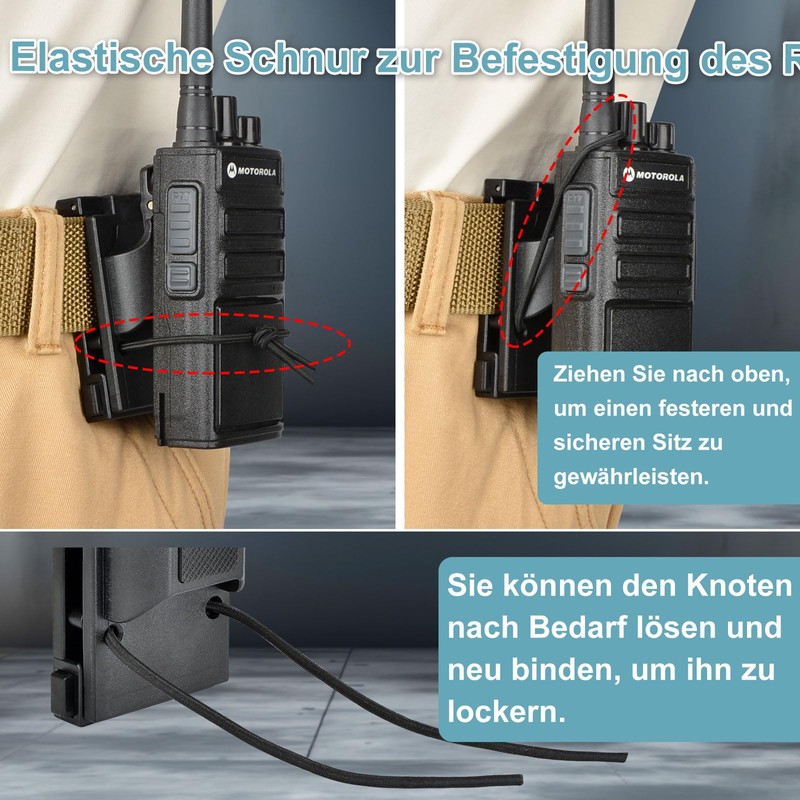- Elastic cord stabilizes the radio: the elastic cord can be pulled to the body or top of the radio, which can make the radio stable and not wobble. You can also loosen and re-tie the knot to loosen it and increase stability.