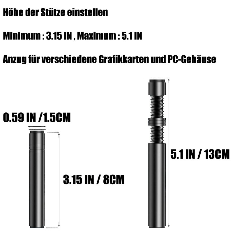 • Size and quantity: 2 pieces graphics card holder, maximum length: 13 cm/5.1 inches, min length: 8 cm/3.15 inches