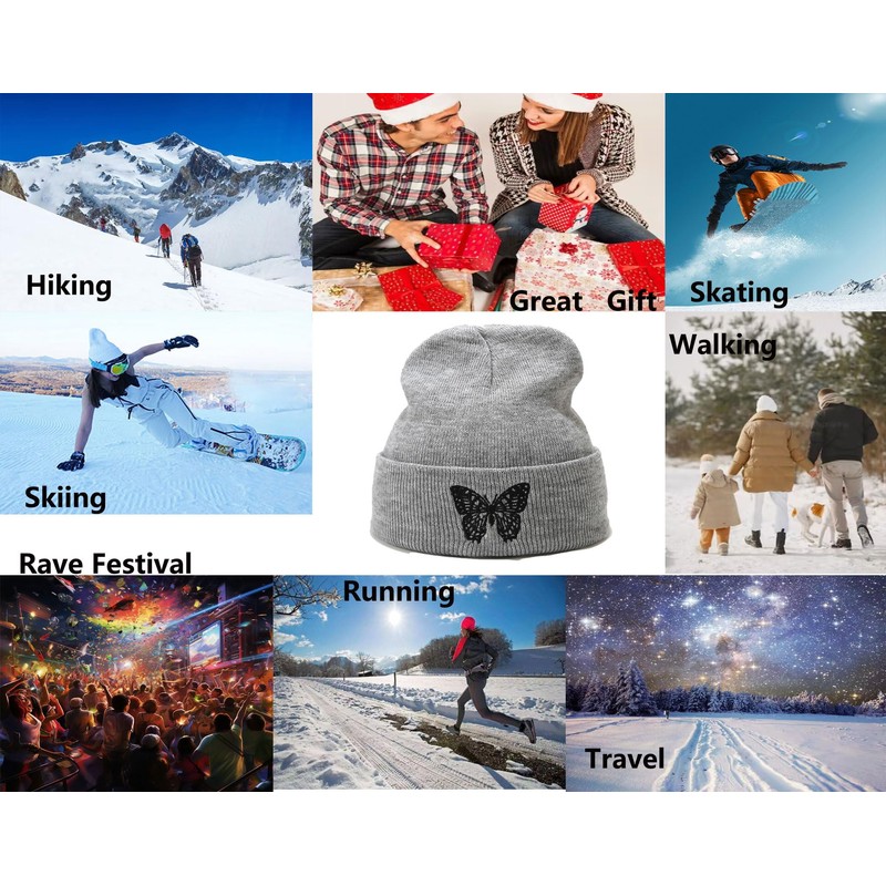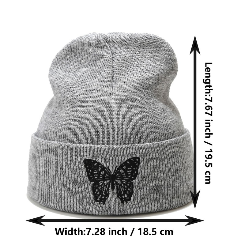 Our this beenies hats is winter warm clothing accessories, it can keep you thermal and make you look fashionable at the same time. Our these fisherman beanie are in novelty butterfly embroideried design, dazzling and fashionable, it will make you more eye-catching among the crowd. This goth hat comes in a free size that can be adjusted on anybody's size and is easy to wear and take off, suitable for most women and men. Double layer and cuffed design, this beanies y2k can be worn straight or slouchy look or fold to short skully style, you can wear with beanie cuff showed up or pull it down to show a different style according to your favor, when pull the cuff part down, your ears can be fully covered, locks the temperature and keeps the cold wind from entering. With its light weight, this cozy men's beanie will not cause pressure on your head while keeping warm. This gorro is great for pairing with a stylish outfit or using as a helmet liner, workout beanie or running hat. This beani is perfect for outdoor activities, such as ski, fishing, hunting, hiking, camping, running, dog walking, skater, rave festival and travel. Our beannie is an excellent choice as gifts for your own dressing or for your friends and family!