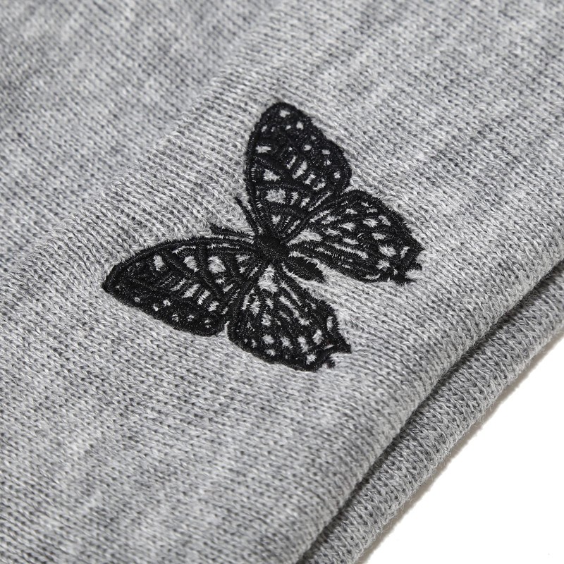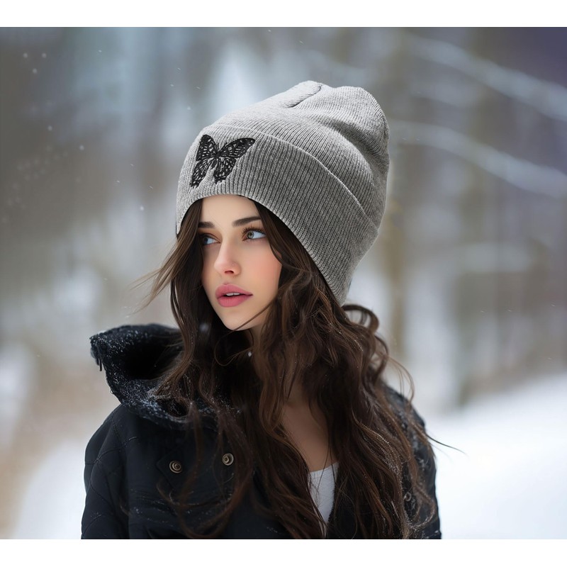 IHAUIUE Butterfly Embroidered Cuffed Beanie Hat Graphic Knitted Skull Cap Double Layer Winter Watch Hats for Women, Men, Grey, One Size-Large