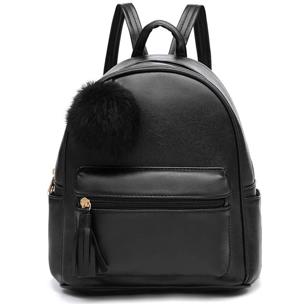 IHAYNER I Backpack for Women Ladies PU Small Waterproof Cute Hairball Travel Rucksack School Purse Fashion Daypack (Black)