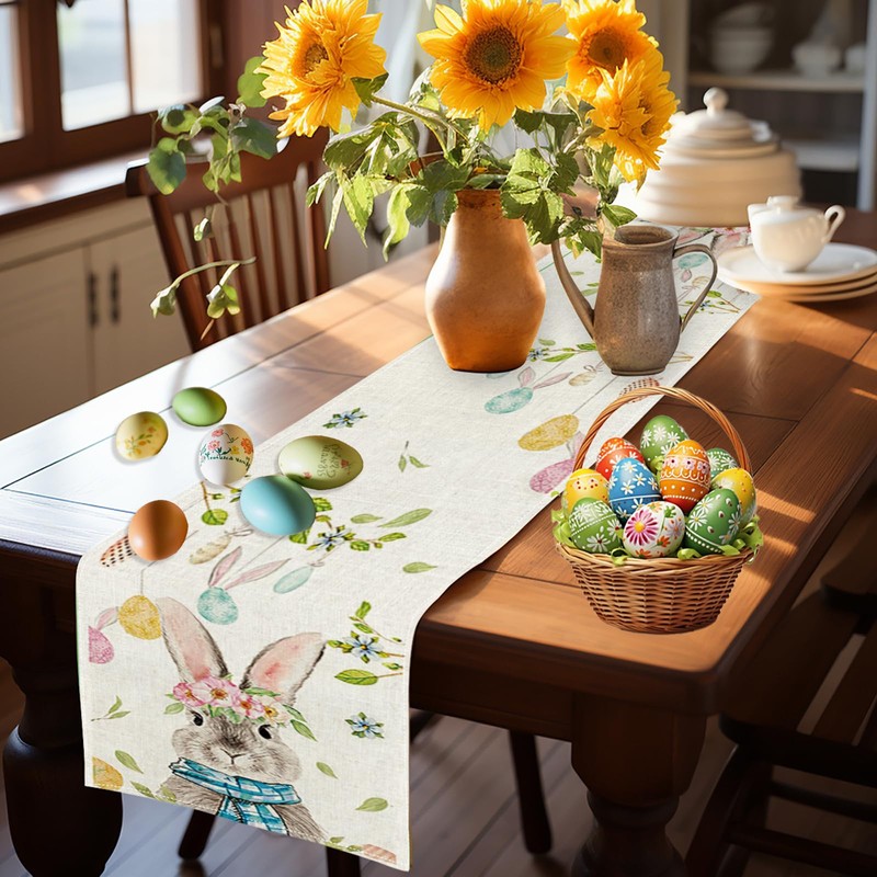 - ⭐ Easter design highlight: with cute rabbit motifs and Easter eggs & spring-like flower pattern, this spring table runner adds vivid holiday charm to Easter tables. Perfect for indoor & outdoor use - creates atmospheric ambience at Easter brunch/family gatherings. The timeless aesthetics harmonise with both rustic country house style and urban modern design.