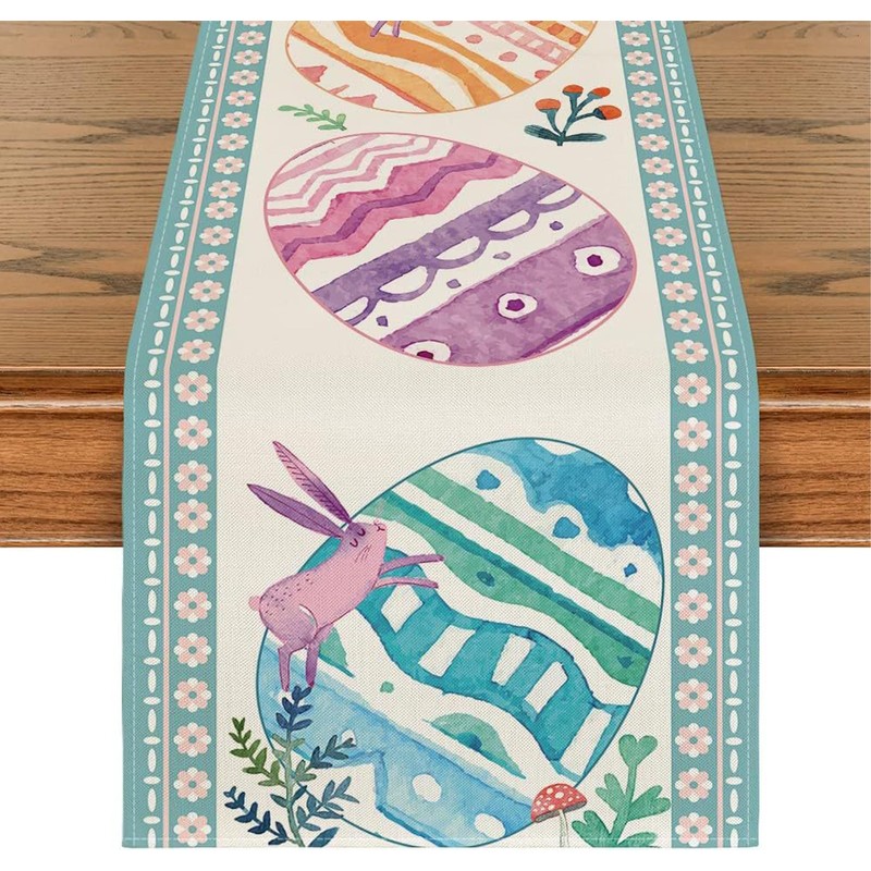 - Spring Easter decoration: the spring table runner with vibrant XXL Easter eggs and playful rabbit motifs gives Easter tables fresh spring charm. Ideal for indoor and outdoor tables - creates atmospheric ambience at Easter brunch/party tables. The timeless aesthetics harmonise with rustic country house style as well as modern interior trends.