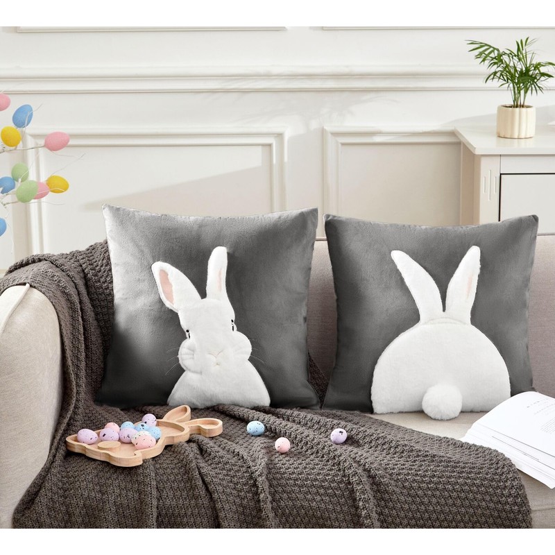 - Fun Design : we design one set with Rabbit head and behind view Pattern, oversized rabbit tail fur ball (diameter 4inch/10cm)makes the rabbit background more cute and lively;Wonderful decoration for indoor and outdoor use, which can be used on sofa, chair, couch, car, bed, office, etc.. best gift for your family and friend. not only Ideal for Easter party, birthday, spring event, anniversary but also suitable for daily home decor