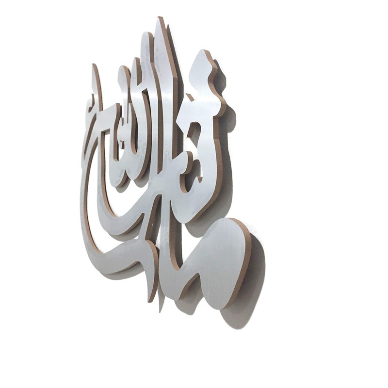 iHcrafts Unique and Elegant Islamic Wall Art Decor Masha Allah Masha'Allah Mash'Allah Joy Praise Appreciation Thankfulness to Allah God Will Compressed Wood 23"x16" (Silver)