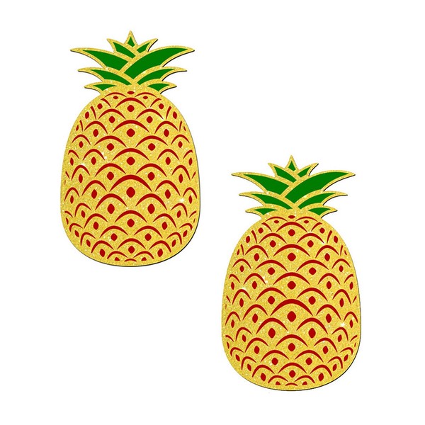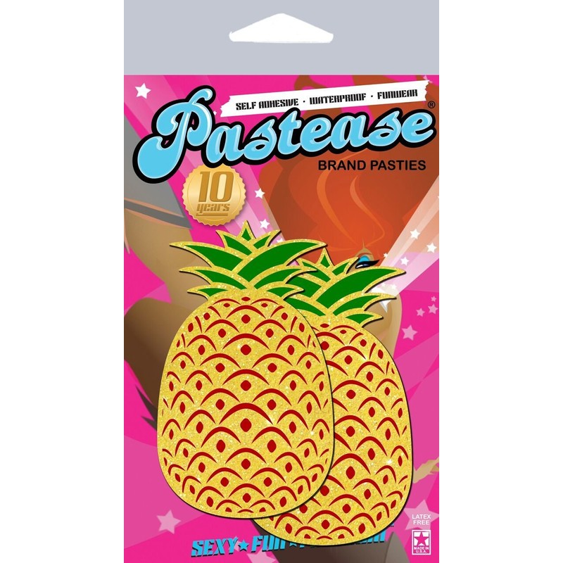 - Pastease Glitter Pineapple Pasties グリッターパイナップルペイスティ YELLOW One Size Fits Most Made In USA Get a little tropical in these yellow glitter pineapple pasties featuring a latex-free, medical-grade, waterproof adhesive that will stay securely in place until gently removed.
