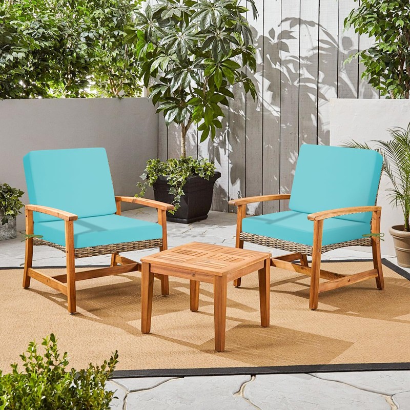 Iheqard Outdoor Deep Seat Cushion Set, 19 x 19 Inch Waterproof and Fade Resistant Patio Furniture Cushion Backrest with Ties for Patio Garden Yard and Balcony (Teal, 19x19Inch)