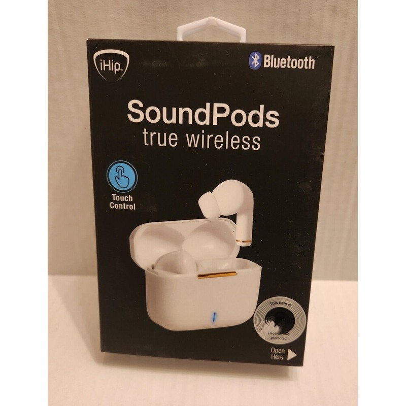 NEW IhIP WHITE BLUETOOTH WIRELESS SOUND PODS Features: built in microphone, high quality sound with extra base,4 hours of listening on a one time charge, connects to IOS and android devices, short Press to answer calls and long press to reject. Design for a comfortable fit in your ear. fast shipping and same day handling.