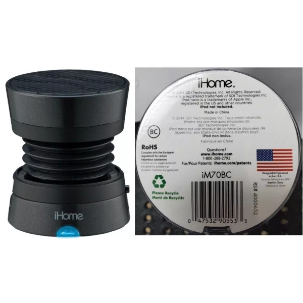 iHome Rechargeable Portable Line-In Mini Speaker - Black/IM70BC
