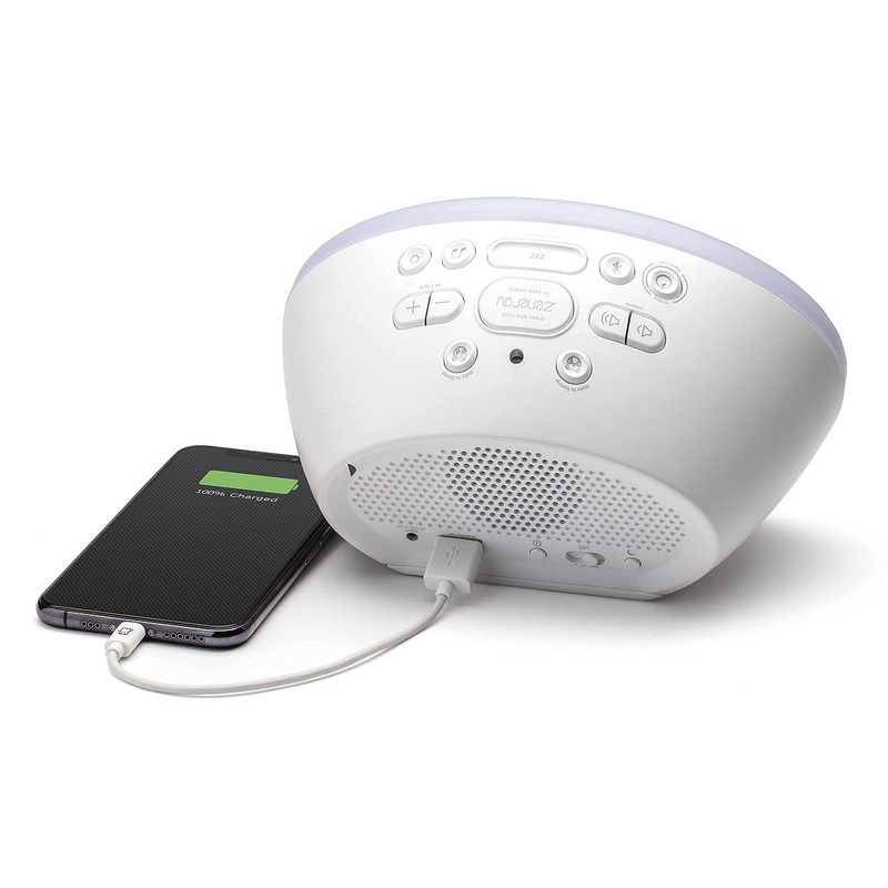 - USB Charging Port 5W USB-A Dual Alarms One for sounds and one for wake light Sleep Timer Specially designed sound program reduces volume as you fall asleep Sure Alarm Battery backup operates the alarm during power outages