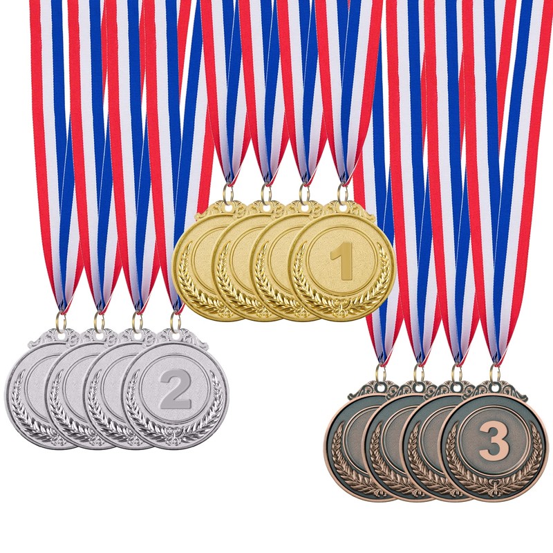 - PACKAGE INCLUDE: Includes 3 kinds of medals, gold medal, silver medal, bronze medal, 4 pieces per color, a total of 12 pieces; Award medals come with ribbons