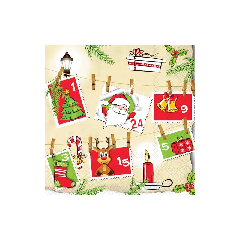 IHR Ideal Home Range Cocktail Napkins Disposable 3-Ply Paper Party Napkin Pack, 5" x 5", Advent Calendar, 20-Count