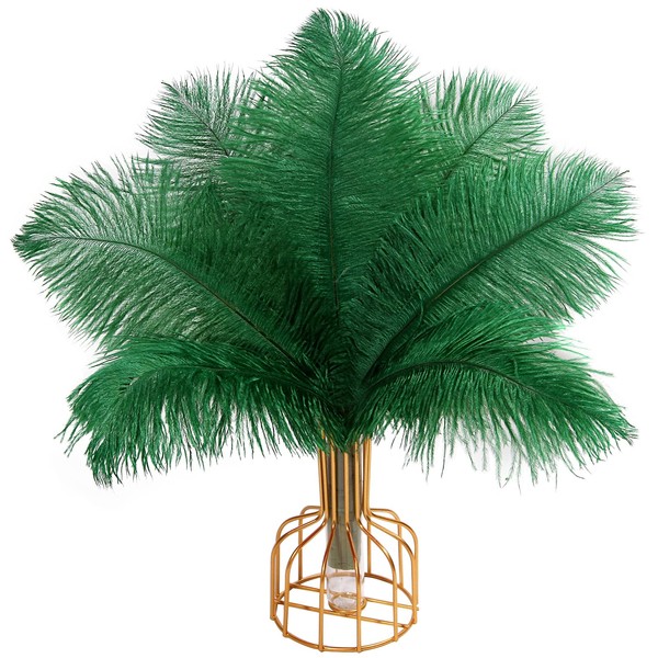 iHUFeather 10pcs Drak Geen Ostrich Feathers Natural Bulk 16-18Inch 40-45cm for Wedding Party Centerpieces Easter and Home Decorate Ostrich Feathers