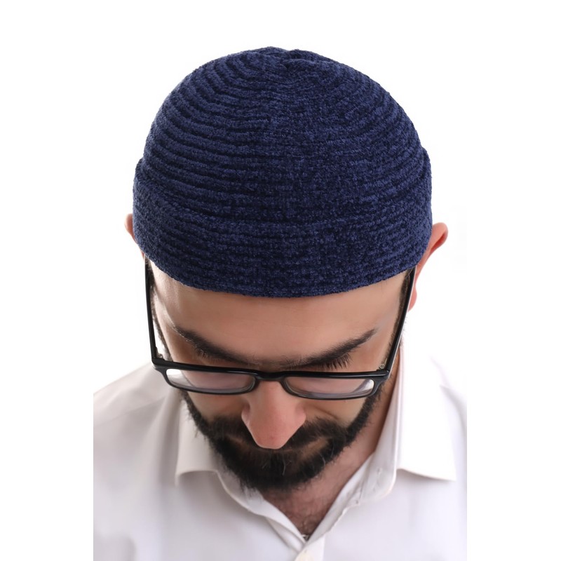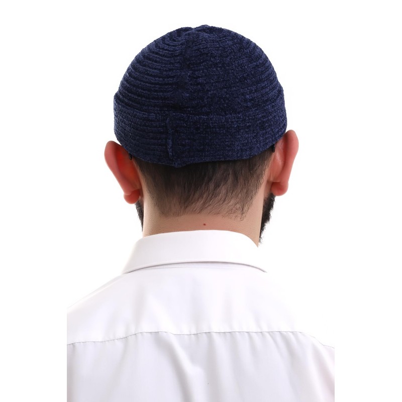 ihvan online - Gorros Kufi para hombre, Taqiya, Takke, turco musulmán de invierno de terciopelo enrollable con bordes redondeados, regalos islámicos, Oscuridad azul, One Size