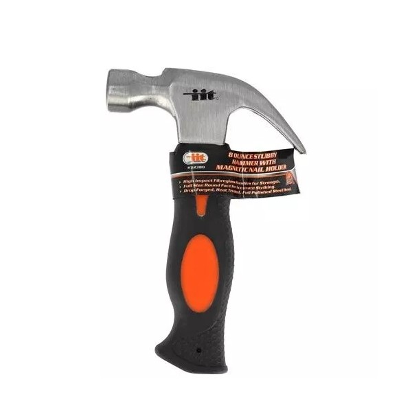 IIT 8oz Stubby Claw Hammer with Magnetic Nail Holder Steel Head Tools 32380