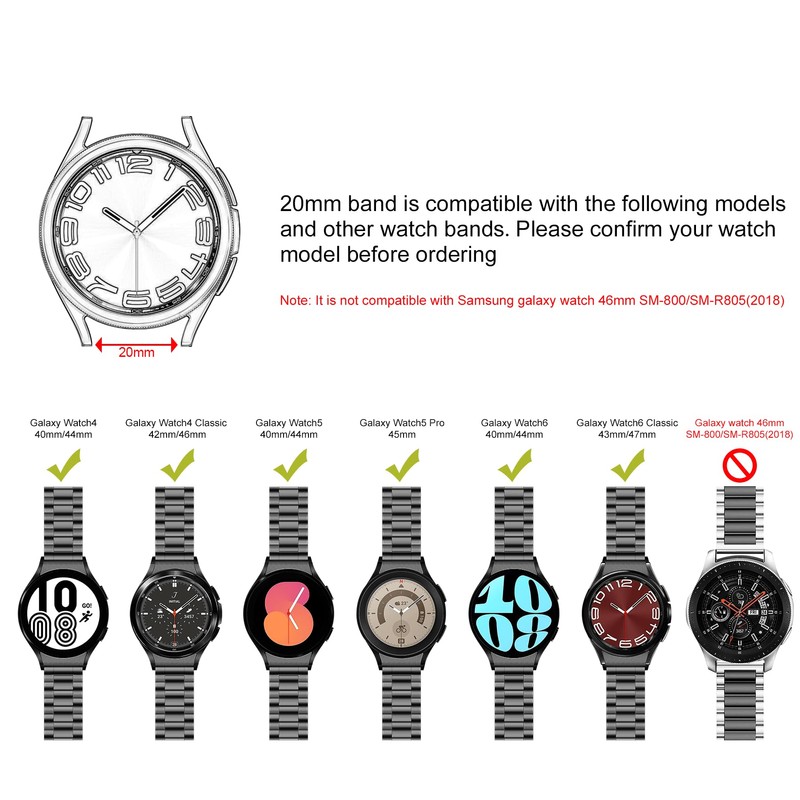 • [Compatibility] Galaxy watch 6 titanium band compatible with Samsung galaxy watch 7 44mm 40mm/samsung galaxy watch 6 classic 43mm 47mm/galaxy watch 6 band 40mm 44mm(2023), galaxy watch 5 Pro 45mm/galaxy watch 5 40mm 44mm(2022), galaxy watch 4 classic 42mm 46mm/galaxy watch 4 40mm/44mm(2021) and other 20mm watches (NOTE - Smartwatch NOT included)