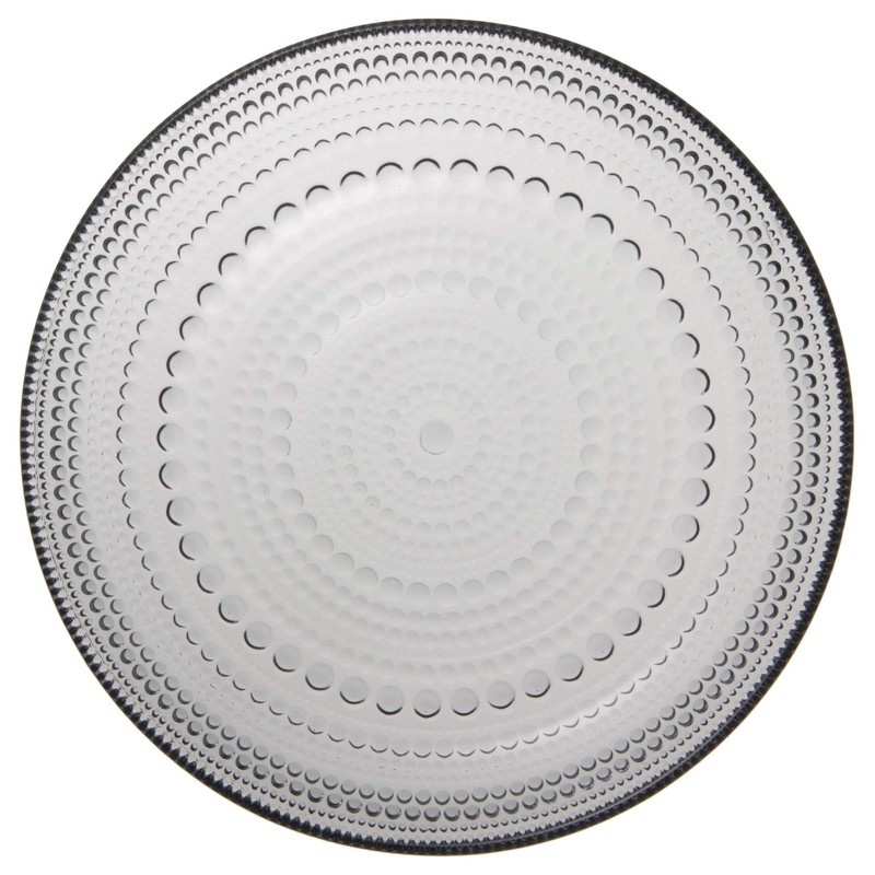 Iittala Kastehelmi Plates and Bowls, Glass, Grey, 17 x 17 x 2 cm